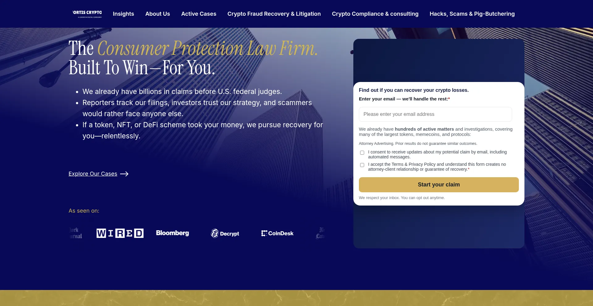 Billions in claims before U.S. federal judges. Trusted by investors. If crypto scams took your money, Data Fortiscrypton Law relentlessly pursues recovery on your behalf.