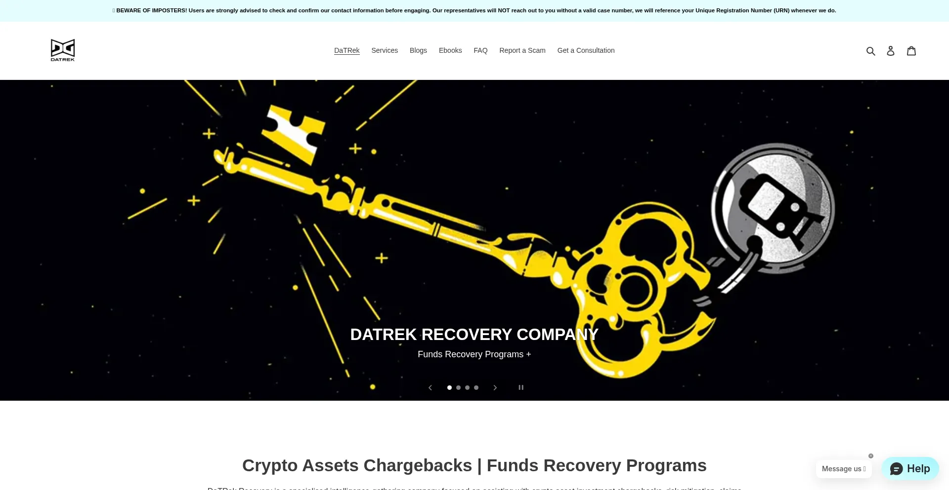 El sitio web datrekrecoverycompany.com anuncia servicios de recuperación de fondos para activos perdidos o robados. Mientras algunos operan en estructuras de honorarios de contingencia, otros pueden requerir pagos por adelantado, lo que puede indicar operaciones fraudulentas. Verifique credenciales y cumplimiento regulatorio antes de contratar tales servicios.