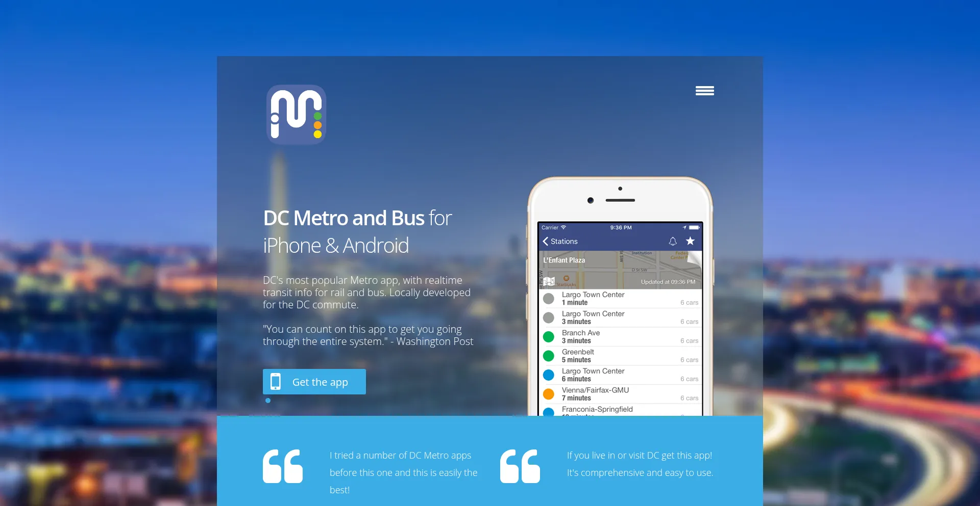 DC's most popular Metro app, with realtime transit info for rail and bus, DC Metro Map, and more.