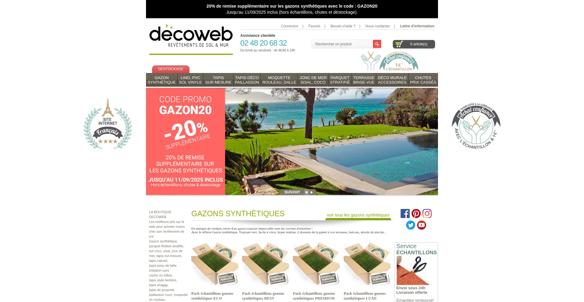 Decoweb.com - gazon synthétique, tapis sur-mesure, sol pvc, moquette