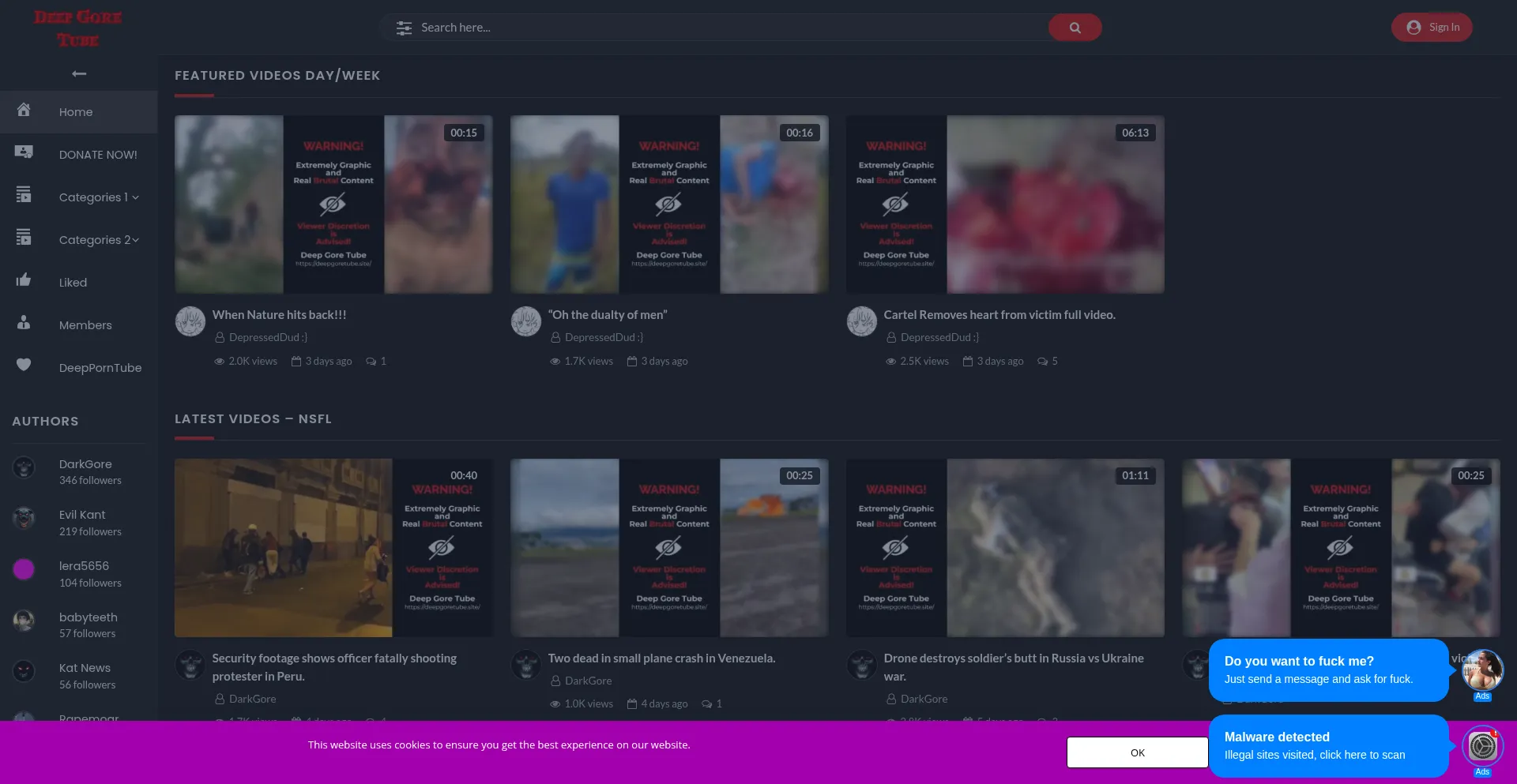 Deep Gore Tube hosts graphic, uncensored news videos and shocking footage from around the world. For adults only — viewer discretion advised.