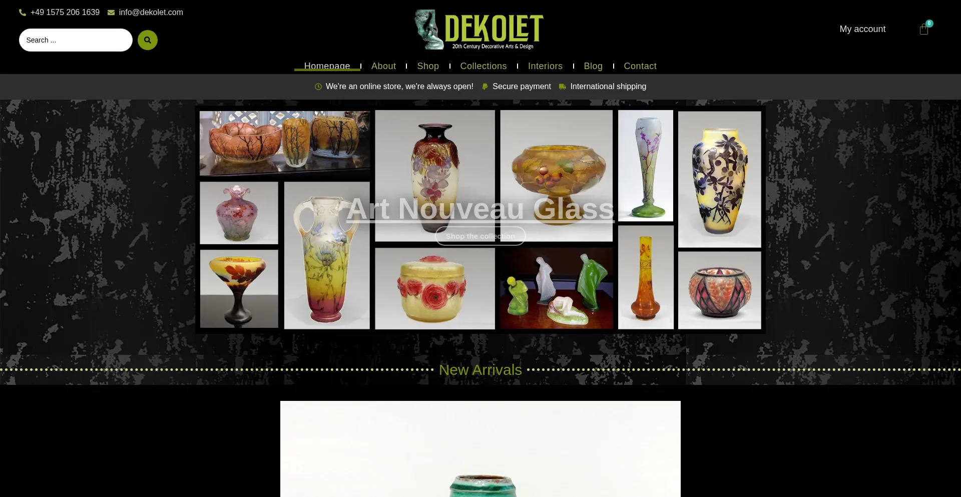 DEKOLET – An online store to shop decorative art items, furniture, lighting, ceramics, sculptures, silver and silver plated, wall art, fashion jewelry and many others.
