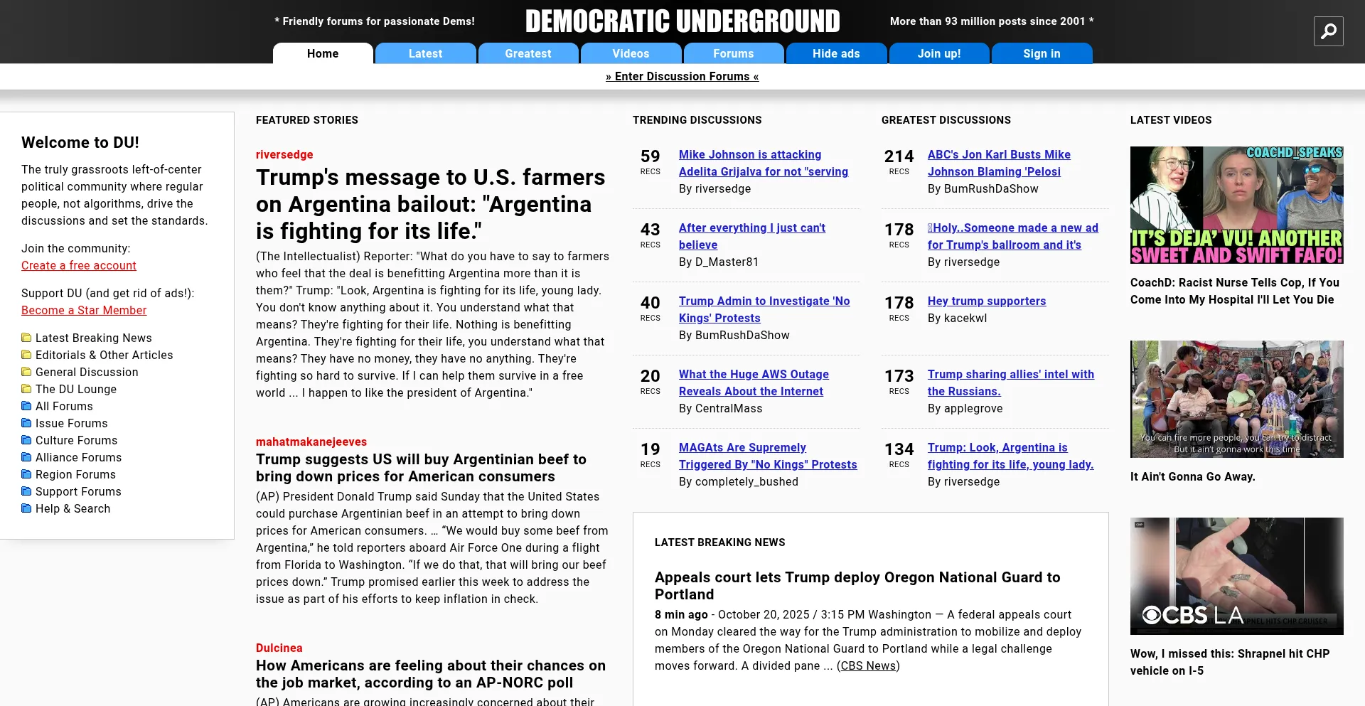 Democratic Underground: Forums for U.S. Liberals and Democrats