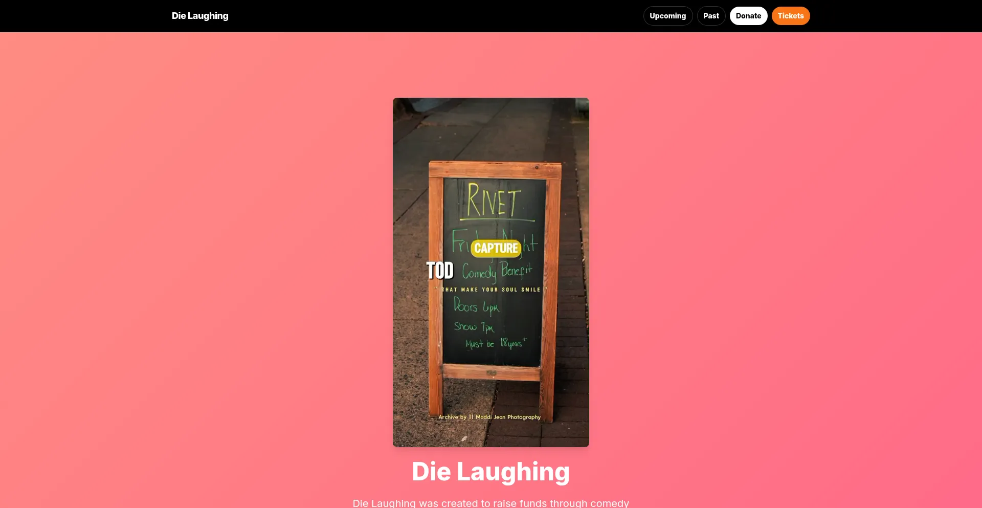 fonts.gstatic.com www.garageexperts.com www.youtube.com dielaughing.org solventdirect.com x.com www.dielaughing.org www.instagram.com www.eventbrite.com www.zeffy.com +4 más