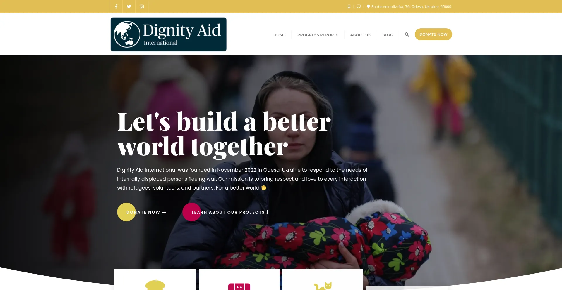 Dignity Aid International was founded in November 2022 in Odesa, Ukraine to respond to the needs of internally displaced persons fleeing war.