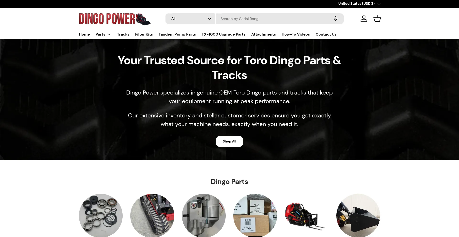 Dingopower.com, How-To-Videos, Toro Dingo Parts, Tracks, TX-1000 Tandem Pump Parts, Other various parts for Toro Products.