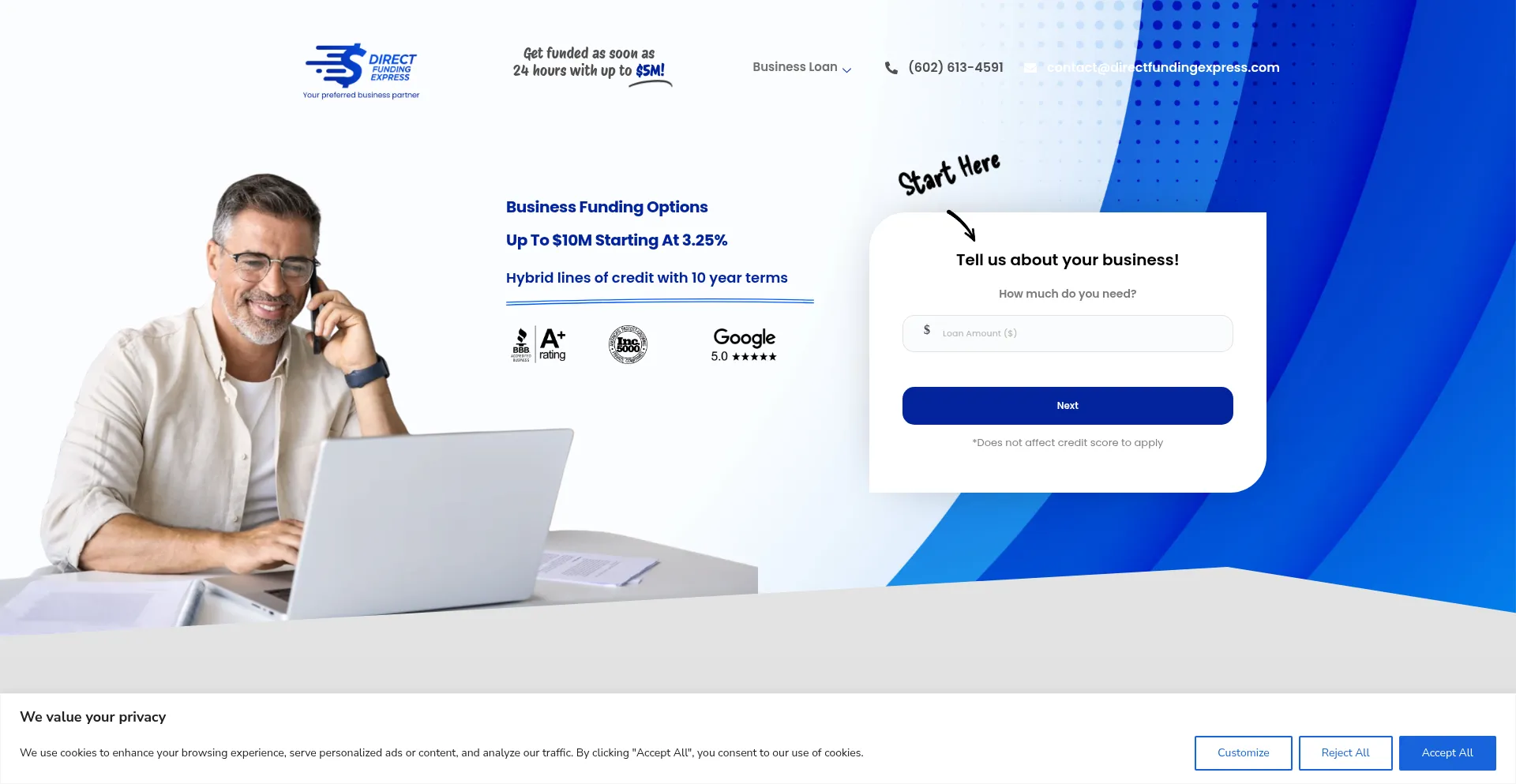 El sitio web implementa mecanismos de consentimiento de cookies en cumplimiento con regulaciones de privacidad como GDPR o CCPA. Esto demuestra que directfundingexpress.com adhiere a estándares de protección de datos y proporciona a los usuarios control sobre prácticas de recolección de datos personales.