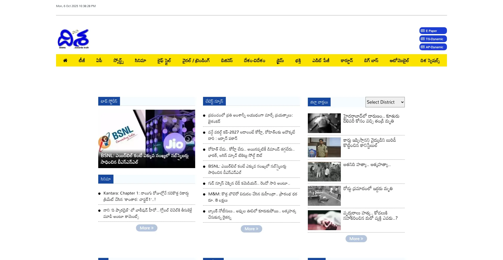 Breaking News in Telugu: Dishadaily is a Telugu news platform. It covers Latest Online Telugu Local news from Andhra Pradesh (AP) and Telangana (TG)