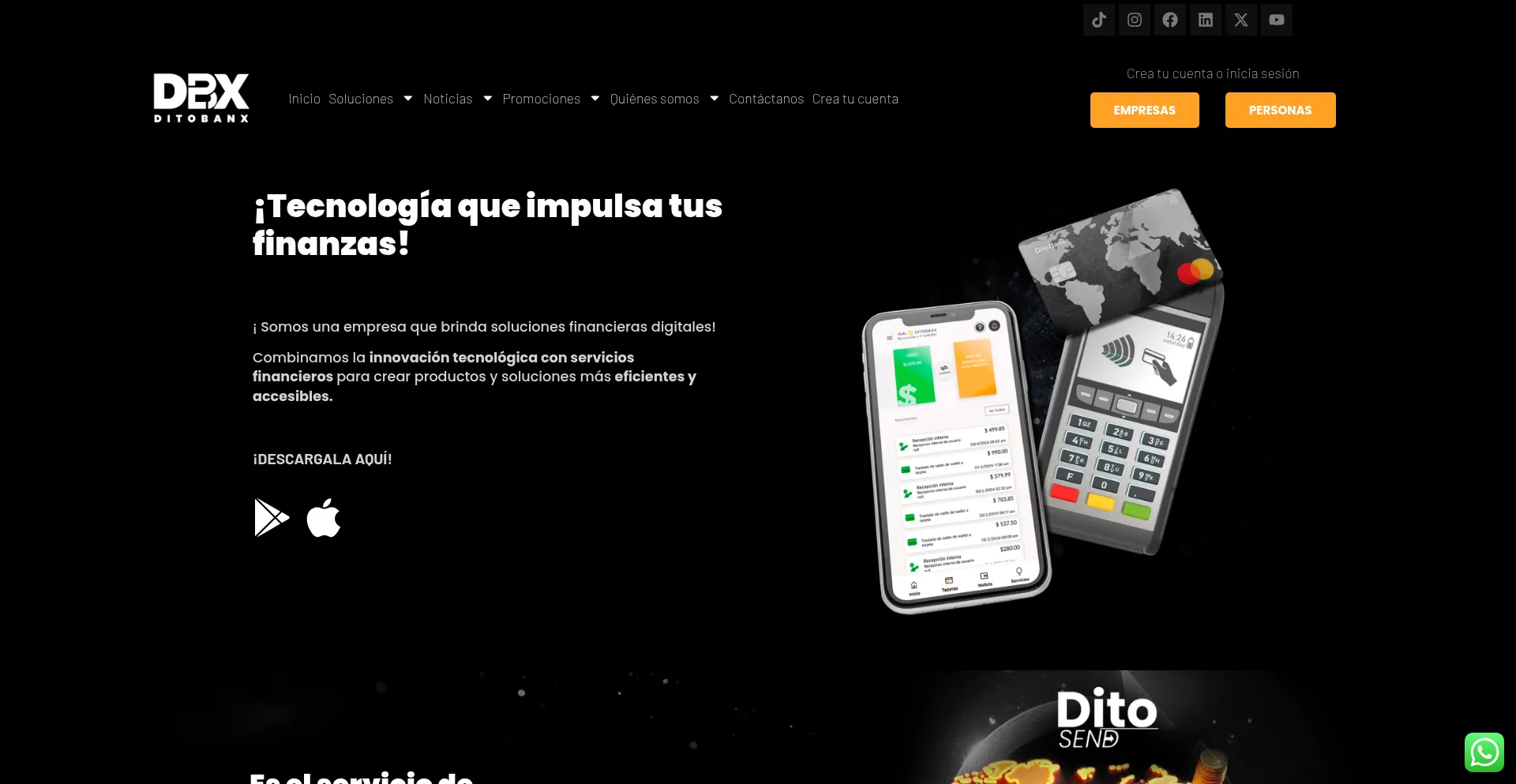 La presencia de enlaces de redes sociales en el sitio web indica que ditobanx.com mantiene cuentas oficiales en redes sociales, lo que es un indicador positivo de credibilidad y compromiso.
