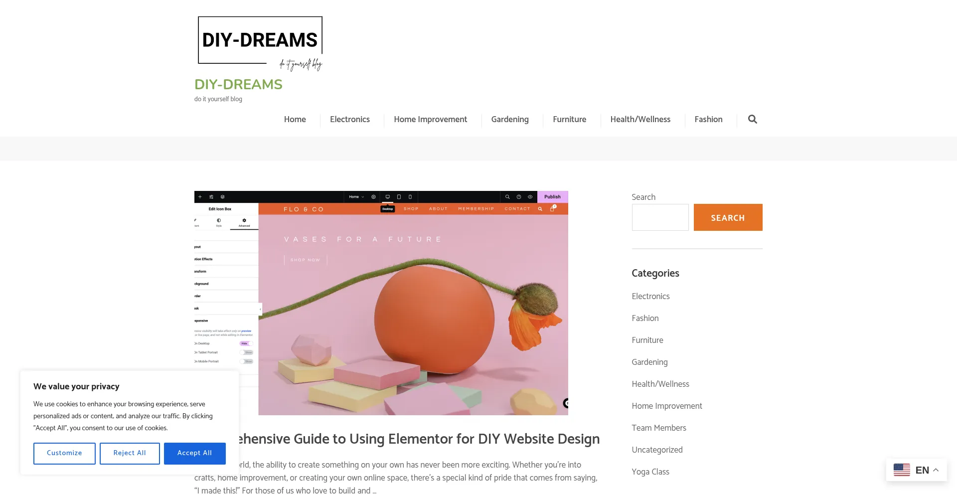 El sitio web implementa mecanismos de consentimiento de cookies en cumplimiento con regulaciones de privacidad como GDPR o CCPA. Esto demuestra que diy-dreams.com adhiere a estándares de protección de datos y proporciona a los usuarios control sobre prácticas de recolección de datos personales.