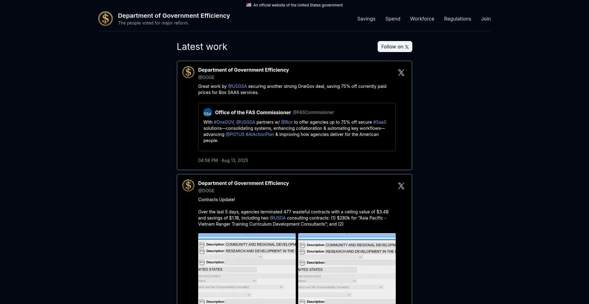 Work | DOGE: Department of Government Efficiency.