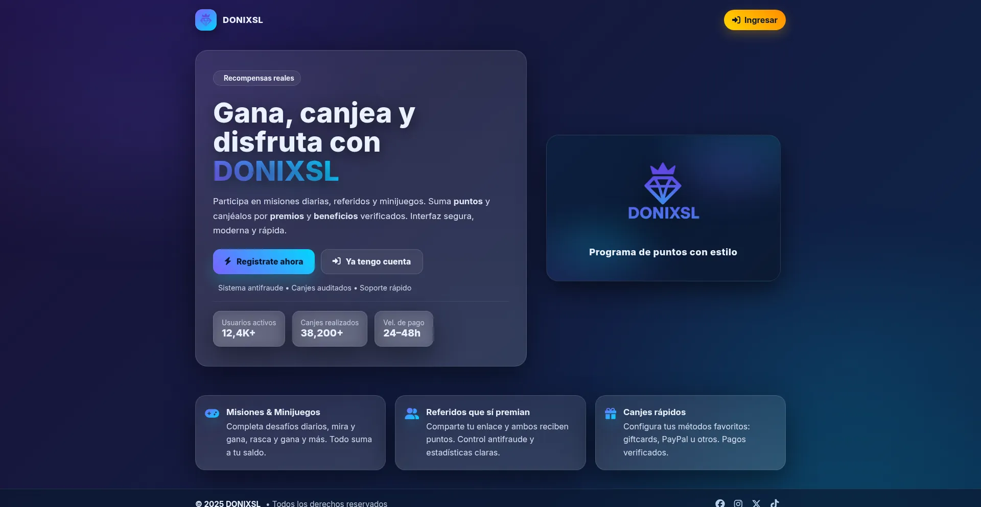 DONIXSL: tu plataforma de recompensas. Gana puntos, canjéalos y disfruta beneficios exclusivos.