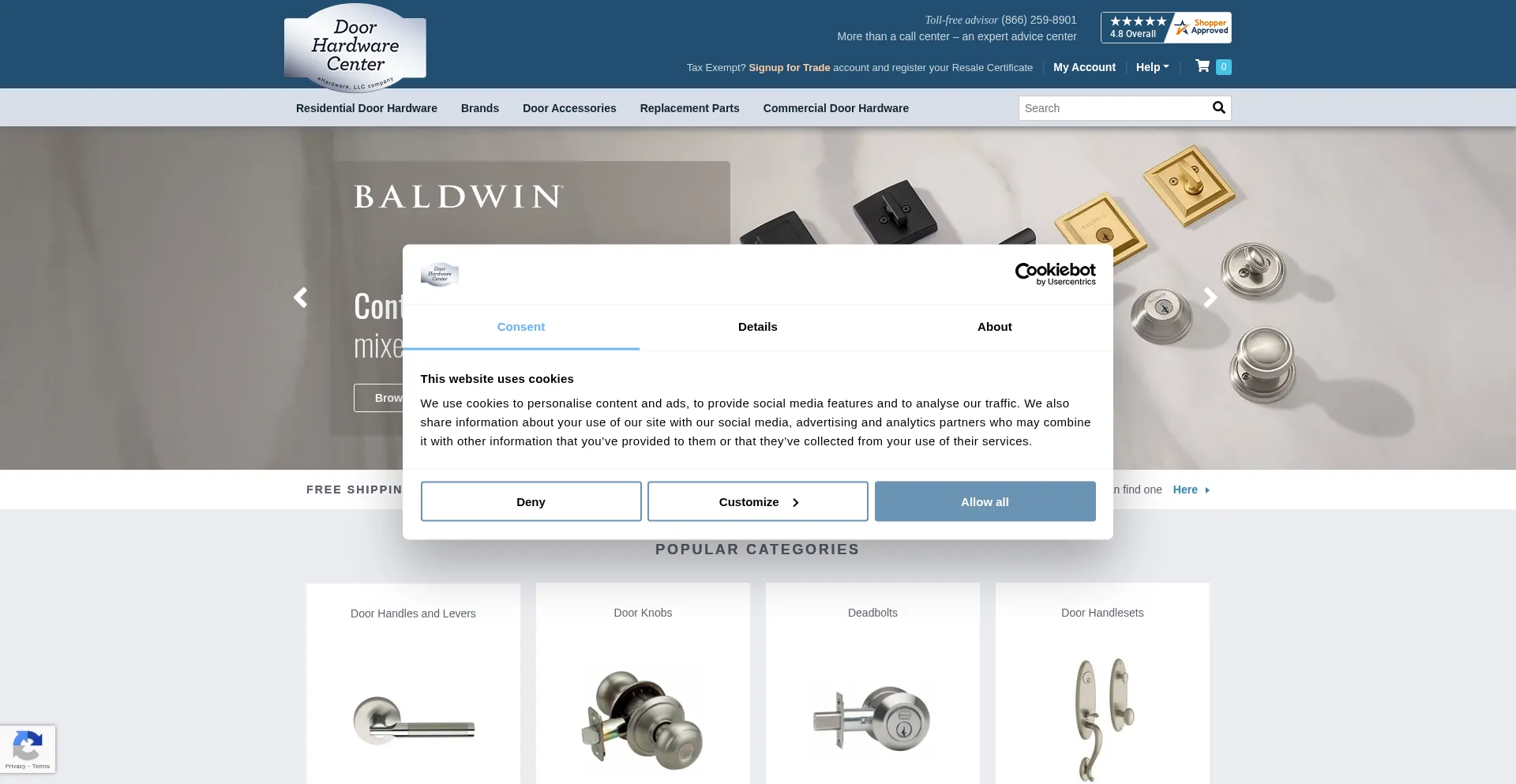 El sitio web implementa mecanismos de consentimiento de cookies en cumplimiento con regulaciones de privacidad como GDPR o CCPA. Esto demuestra que doorhardwarecenter.com adhiere a estándares de protección de datos y proporciona a los usuarios control sobre prácticas de recolección de datos personales.