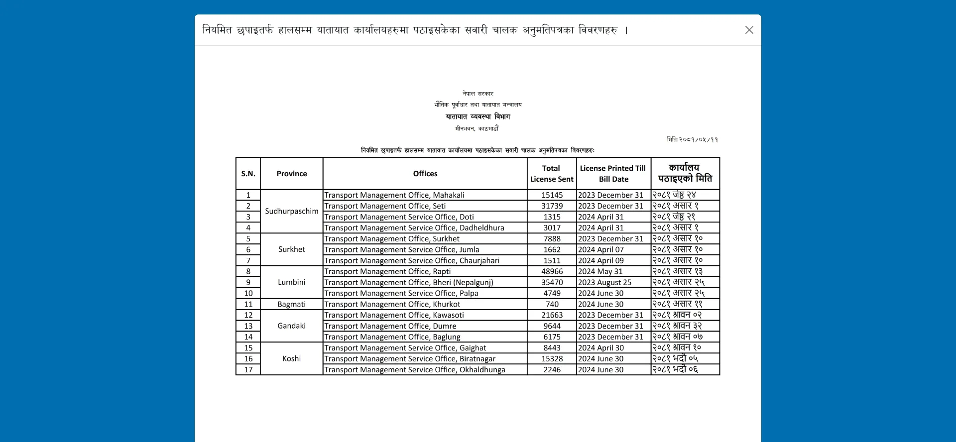 यातायात व्यवस्था विभाग - नेपाल