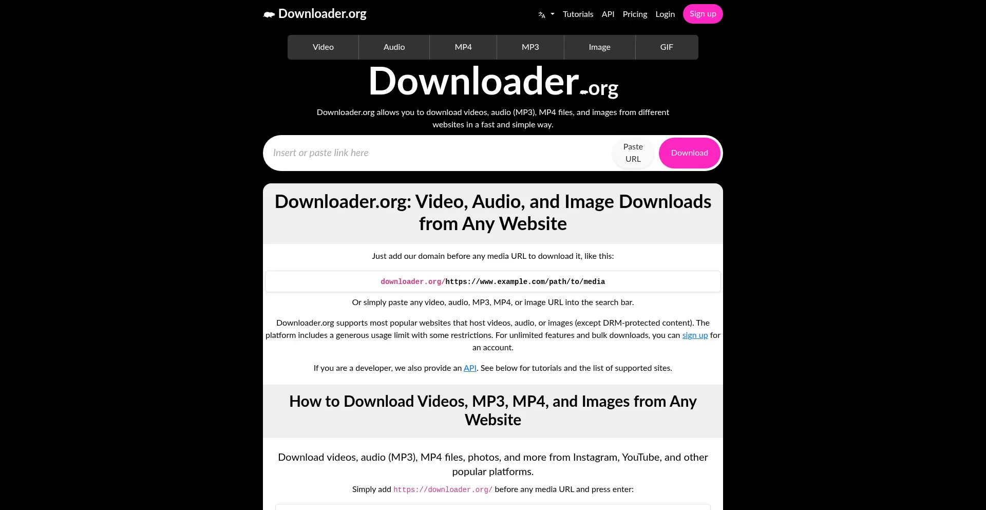 Download videos, audio, MP3, MP4, and images from multiple websites with Downloader.org. Fast, simple, and reliable online downloader.