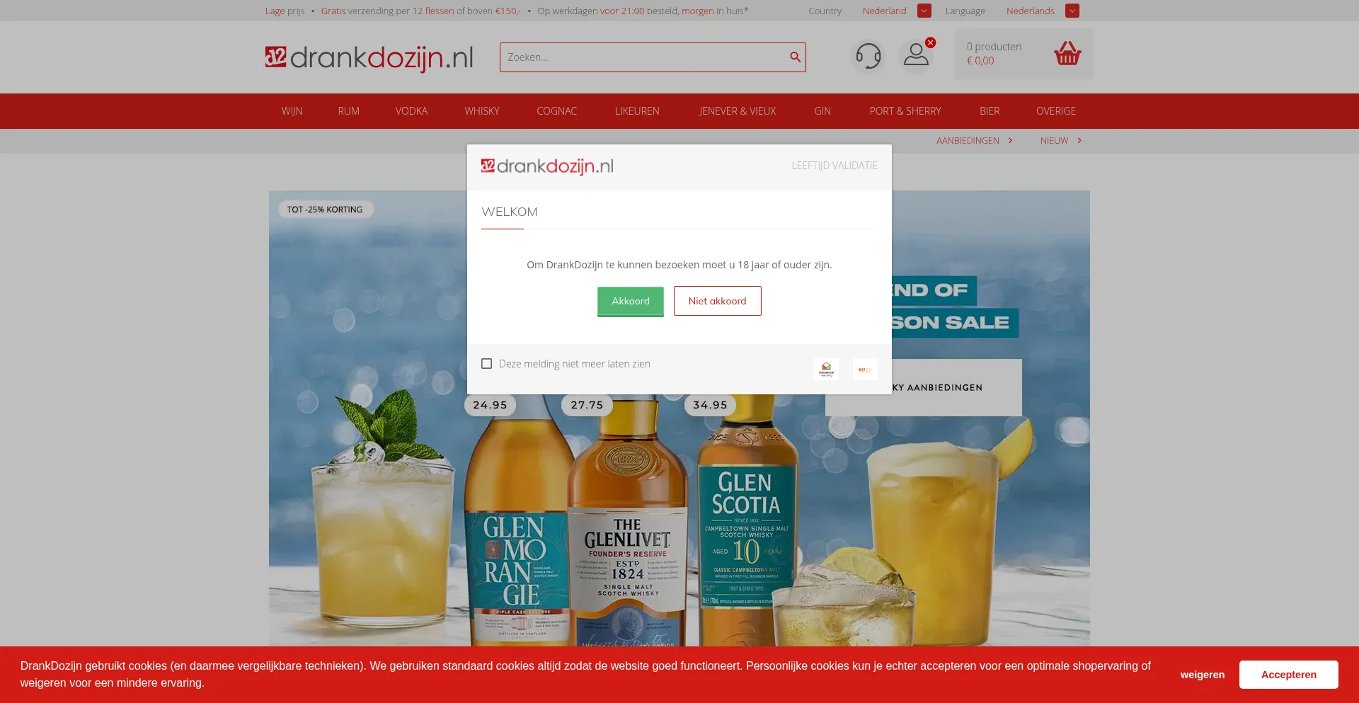 El sitio web implementa mecanismos de consentimiento de cookies en cumplimiento con regulaciones de privacidad como GDPR o CCPA. Esto demuestra que drankdozijn.nl adhiere a estándares de protección de datos y proporciona a los usuarios control sobre prácticas de recolección de datos personales.