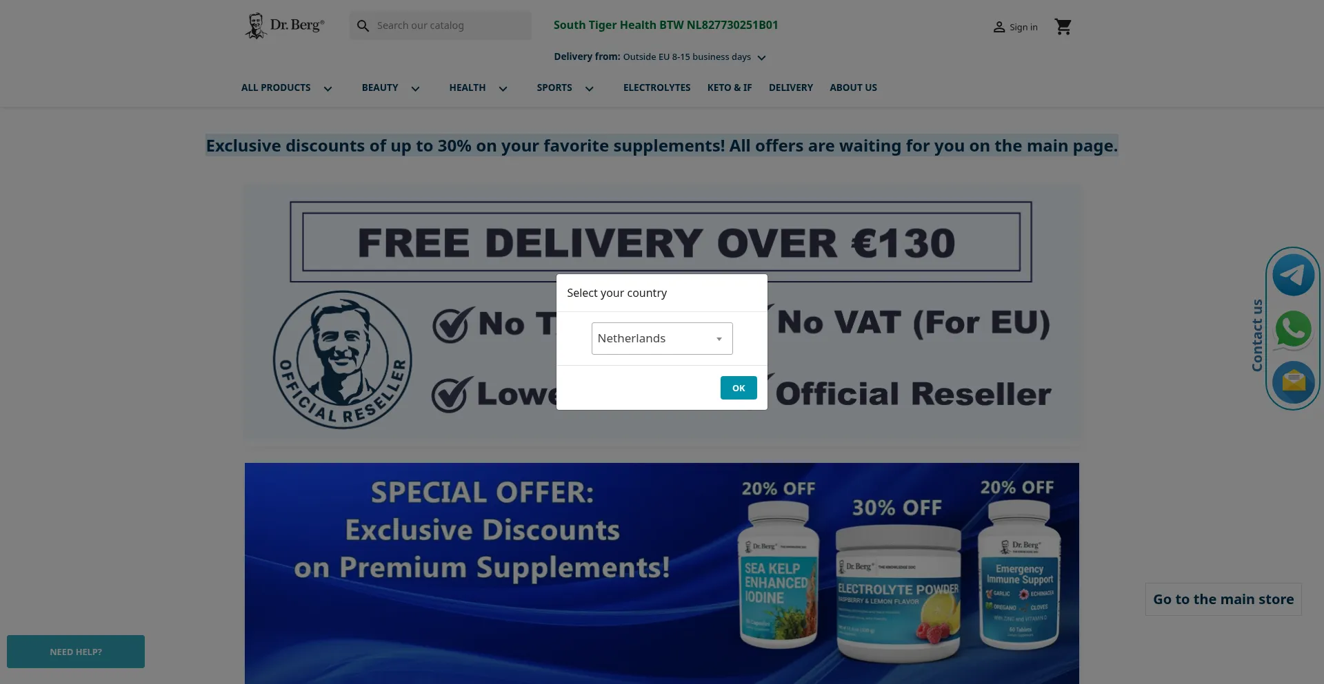 Berg's vitamins. Official distributor in the European Union
