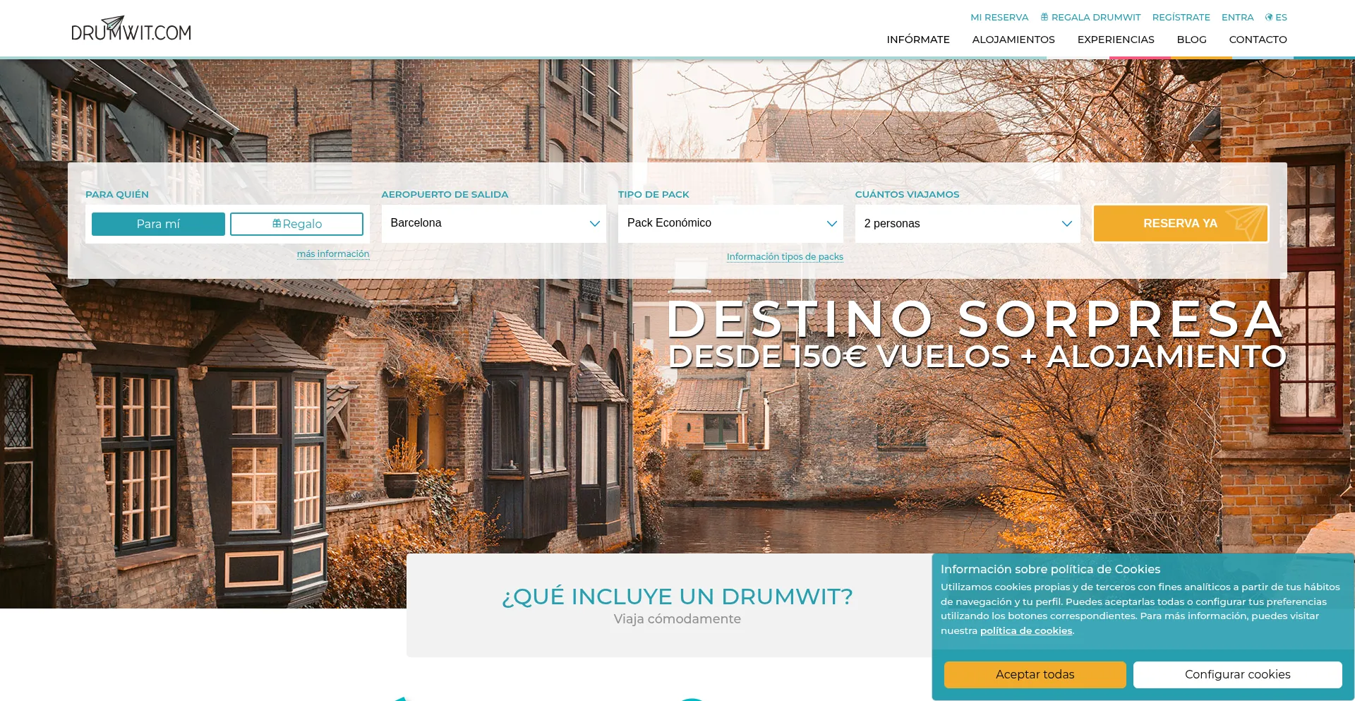 Drumwit | Viaja a un destino sorpresa desde 150€ vuelos + hotel por persona