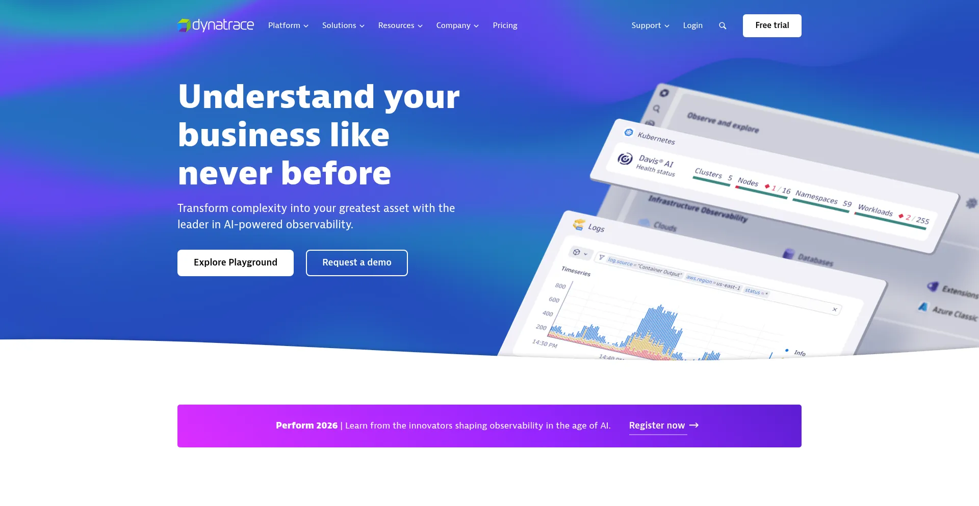 Transform complexity into your greatest asset with Dynatrace, the leader in AI-powered observability.
