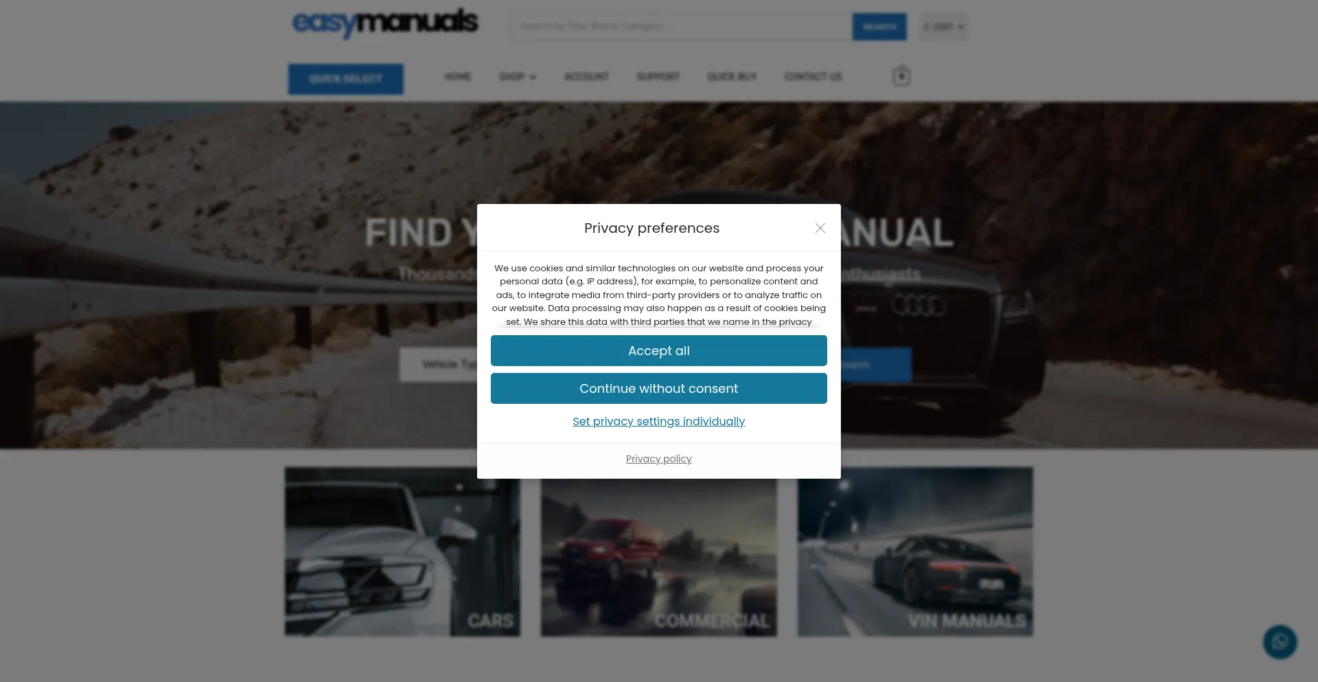 El sitio web implementa mecanismos de consentimiento de cookies en cumplimiento con regulaciones de privacidad como GDPR o CCPA. Esto demuestra que easymanuals.co.uk adhiere a estándares de protección de datos y proporciona a los usuarios control sobre prácticas de recolección de datos personales.