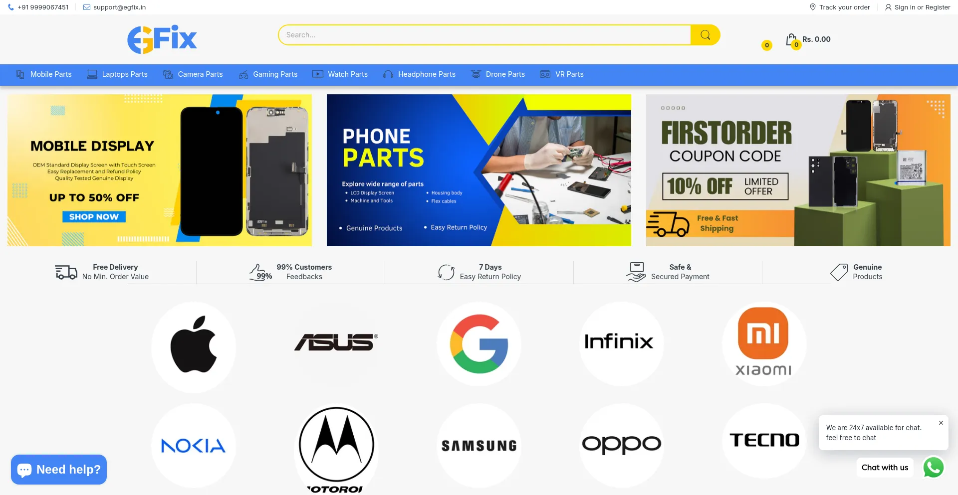Shop high-quality mobile spare parts, display screens, batteries, and repair tools online in India. Fast shipping & trusted by 30,000+ customers. EGFix.in