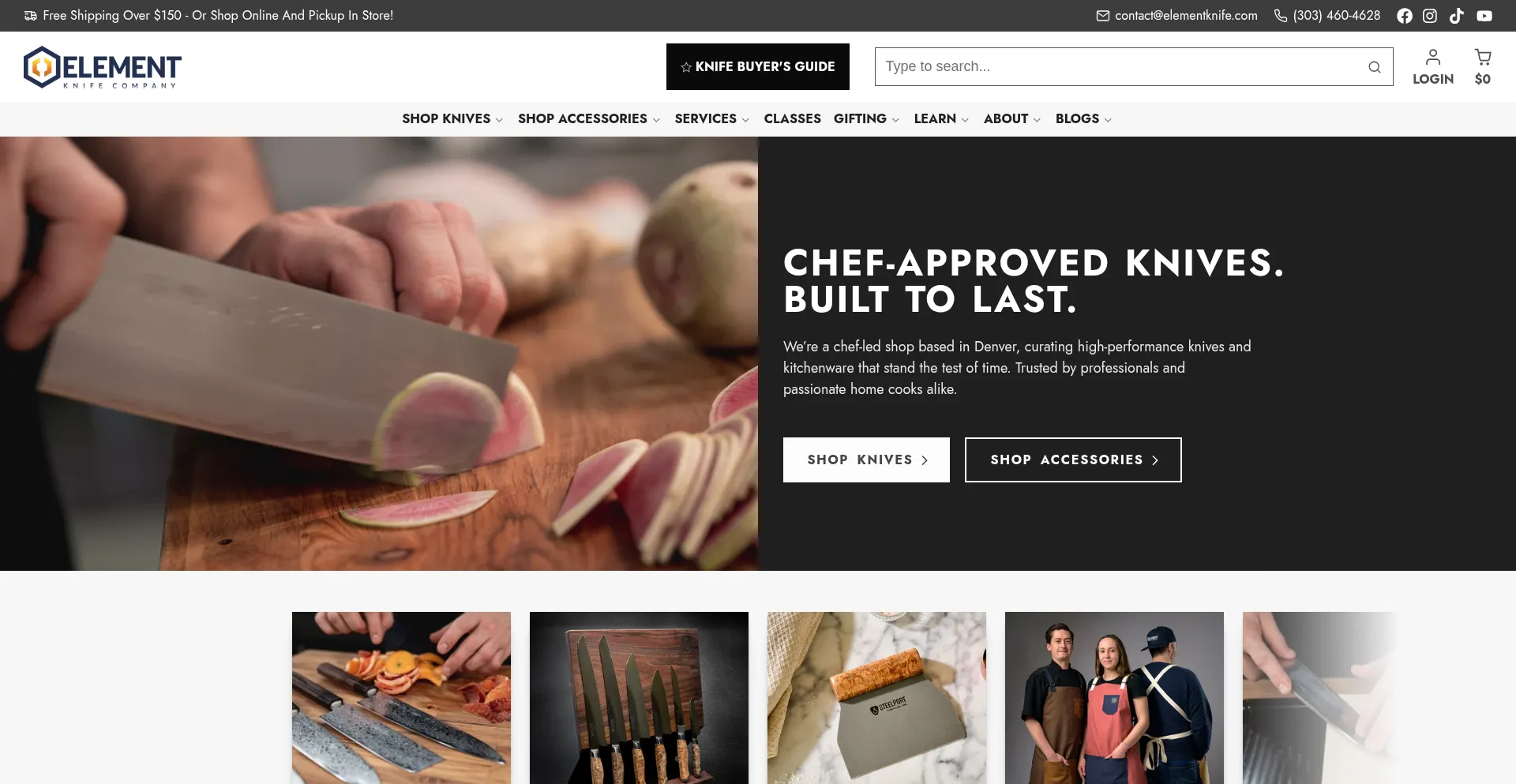 Element Knife Company at 1701 Platte St, Denver, offers top Japanese and Western cutlery, kitchen accessories, and sharpening services. Nationwide shipping and knife education.