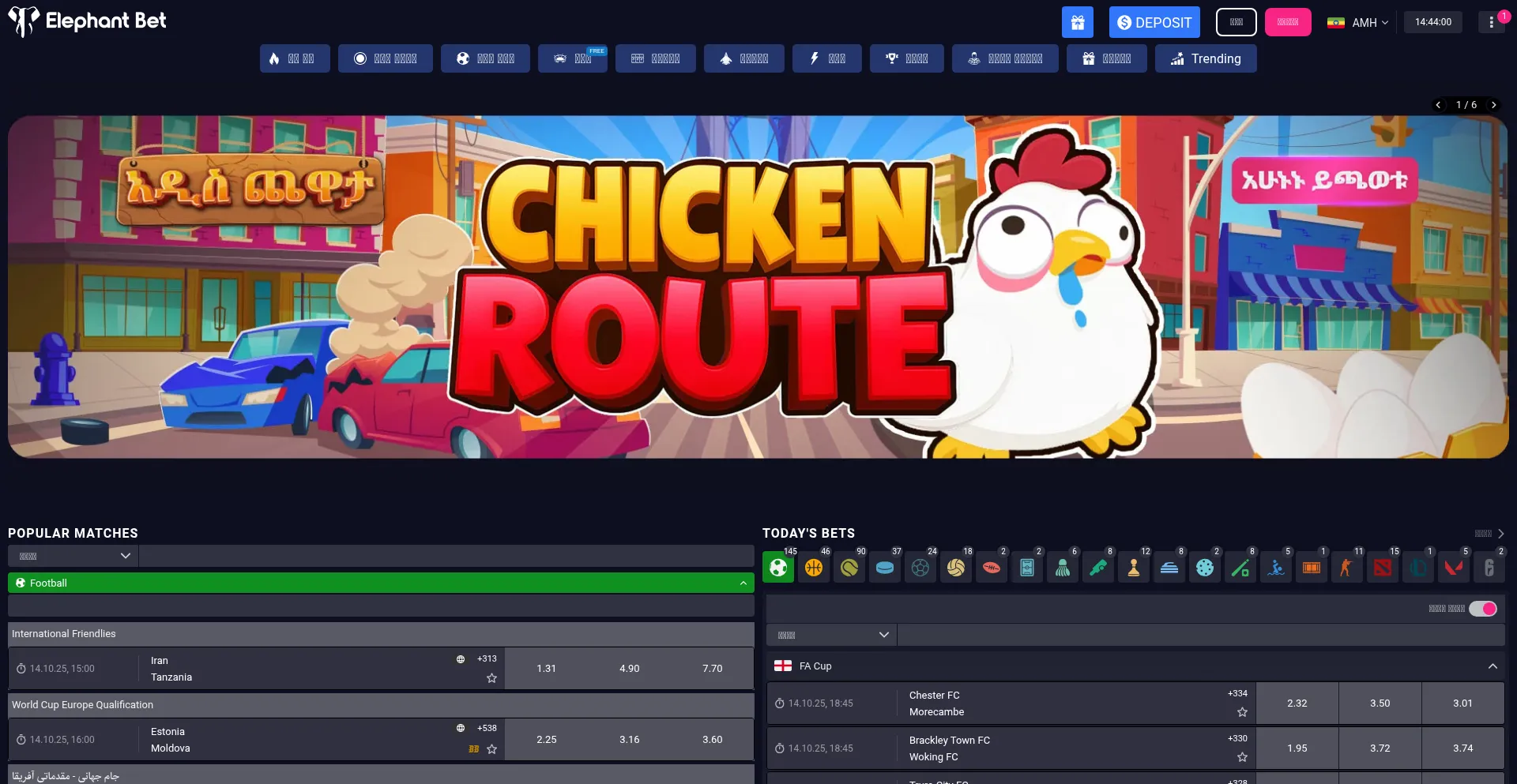 Experience top online sports betting with ElephantBet. Trusted by thousands in Ethiopia for live odds, fast withdrawals, and exciting daily bets!