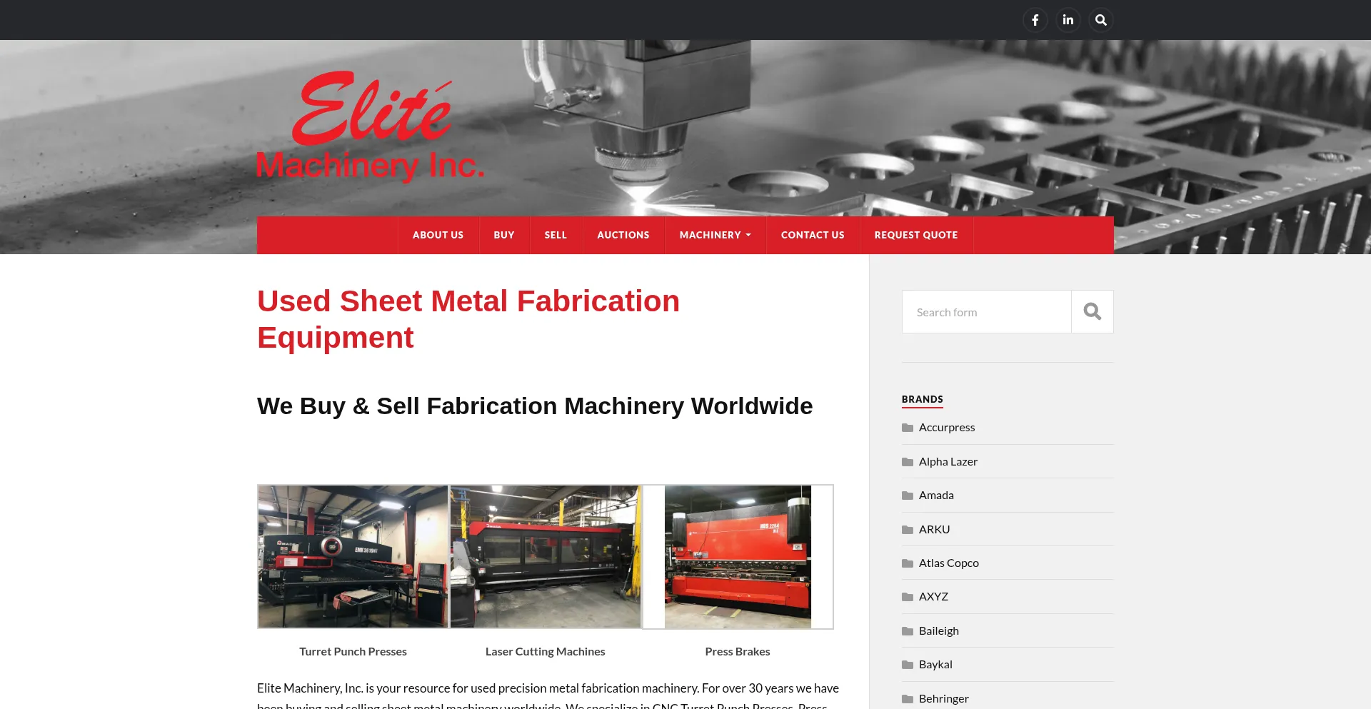 Used Sheet Metal Equipment | Elite Machinery, Inc.