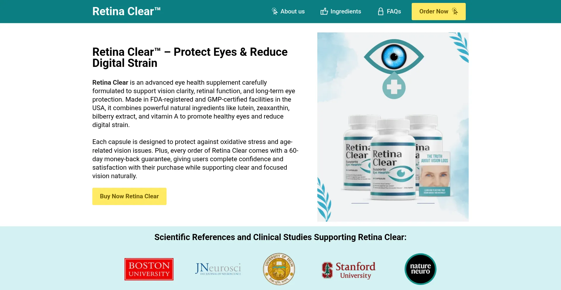 Retina Clear is a natural eye supplement designed to reduce digital eye strain, improve vision clarity, and support overall eye health for adults in the USA.