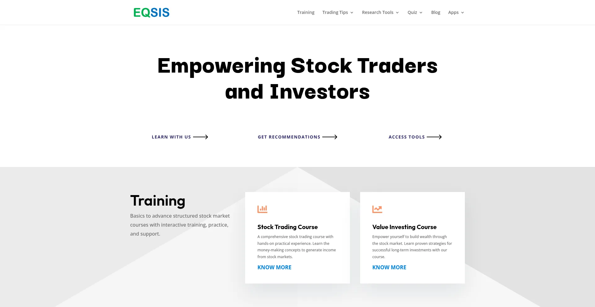 EQSIS offer trading training, mentoring. trading recommendations for stock traders in India. With us you can gain confidence to trade in stock market.