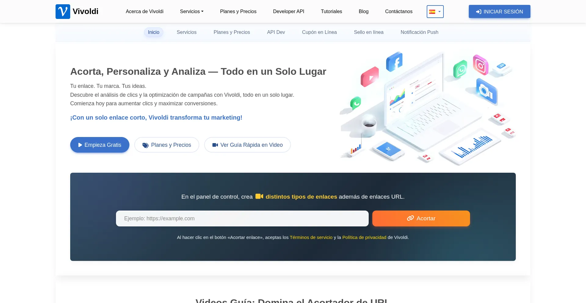 Acortador URL Gratis | Análisis de Clics y Códigos QR - Vivoldi