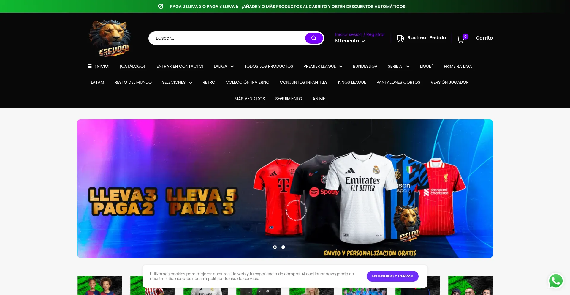 En Escudo Favorito encontrarás las mejores camisetas de fútbol personalizadas, para los fans de los grandes equipos. ¡Compra la tuya ahora y muestra tu pasión! Paga 2 y llev...