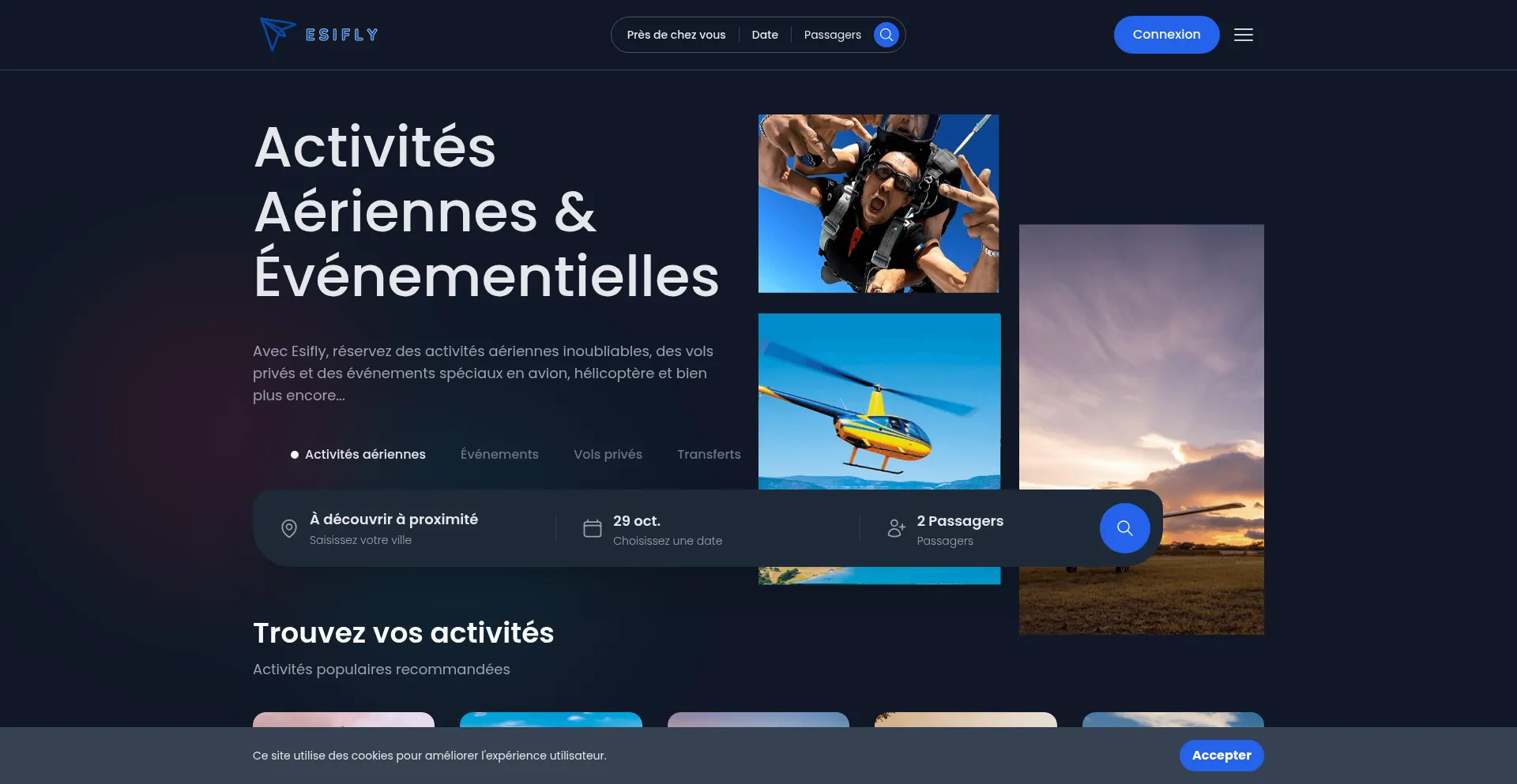 Avec Esifly, réservez des activités aériennes inoubliables, des vols privés et des événements spéciaux en avion, hélicoptère et bien plus encore...