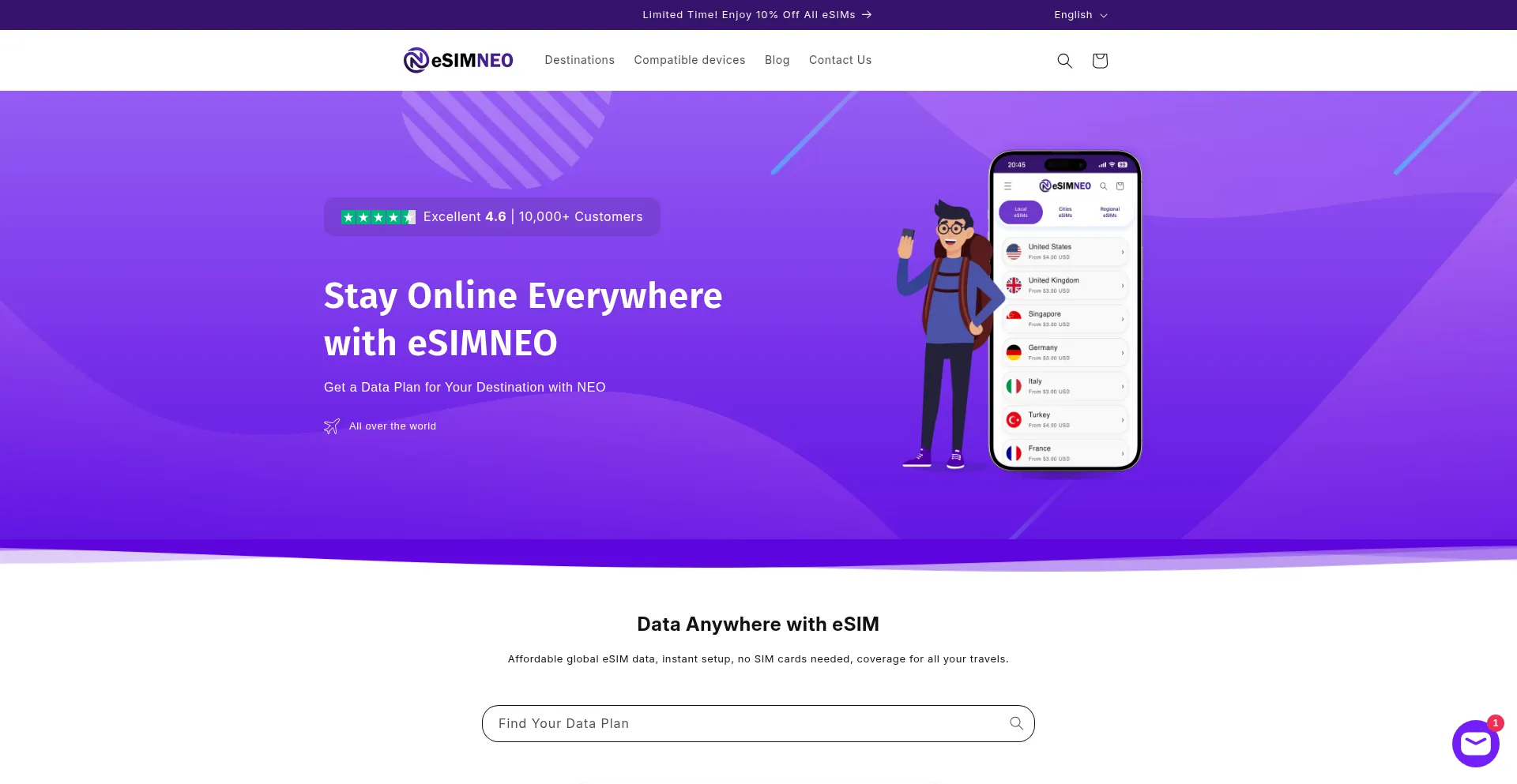 Get the best eSIM plans for global travel. Easy activation, affordable rates, and seamless connectivity with eSIM NEO. Stay connected worldwide!