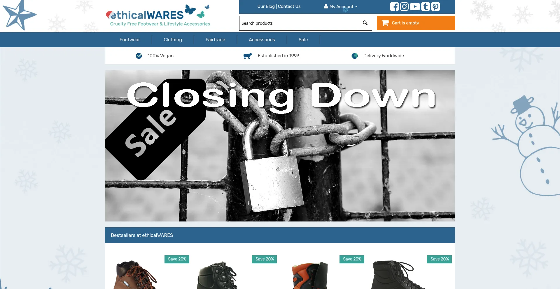 Established in 1993, Ethical Wares sells vegan shoes, boots & trainers as well as non-leather belts & cruelty free clothing & accessories.
