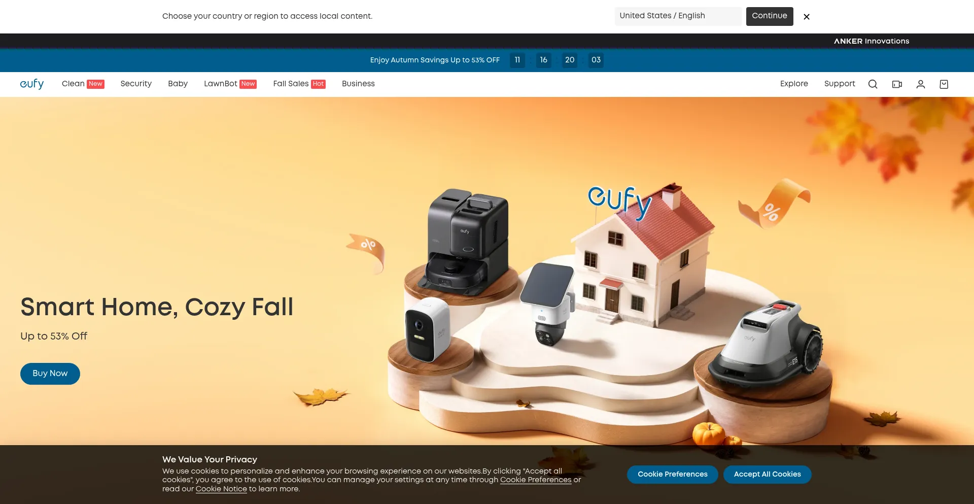 El sitio web implementa mecanismos de consentimiento de cookies en cumplimiento con regulaciones de privacidad como GDPR o CCPA. Esto demuestra que eu.eufy.com adhiere a estándares de protección de datos y proporciona a los usuarios control sobre prácticas de recolección de datos personales.
