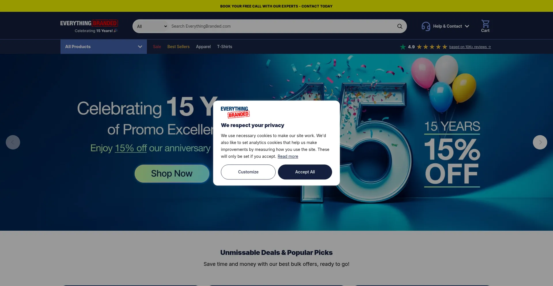 El sitio web implementa mecanismos de consentimiento de cookies en cumplimiento con regulaciones de privacidad como GDPR o CCPA. Esto demuestra que everythingbranded.com adhiere a estándares de protección de datos y proporciona a los usuarios control sobre prácticas de recolección de datos personales.