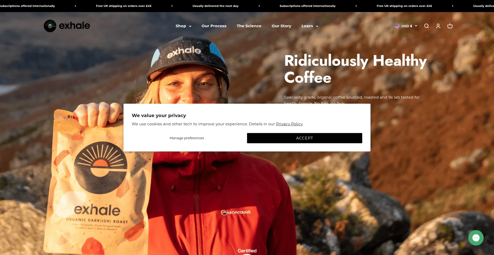 El sitio web implementa mecanismos de consentimiento de cookies en cumplimiento con regulaciones de privacidad como GDPR o CCPA. Esto demuestra que exhalecoffee.com adhiere a estándares de protección de datos y proporciona a los usuarios control sobre prácticas de recolección de datos personales.