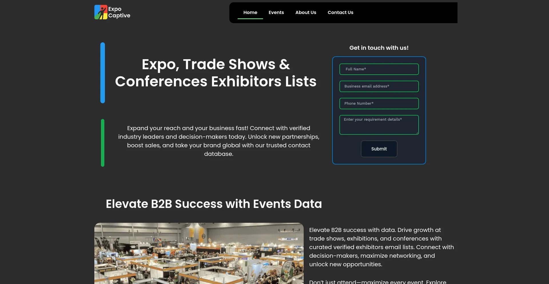 ExpoCaptive offers verified exhibitors & attendees lists for trade shows, with accurate, customizable databases to boost your B2B marketing success.