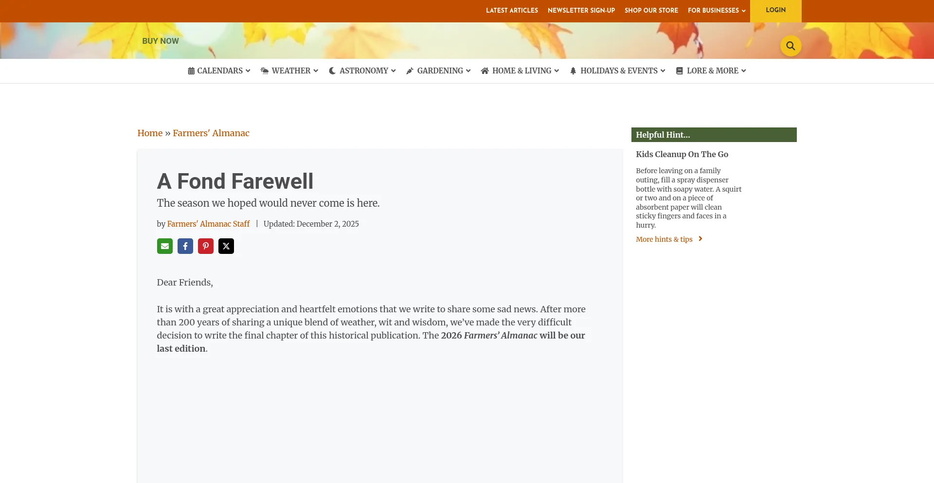 A Fond Farewell from Farmers' Almanac