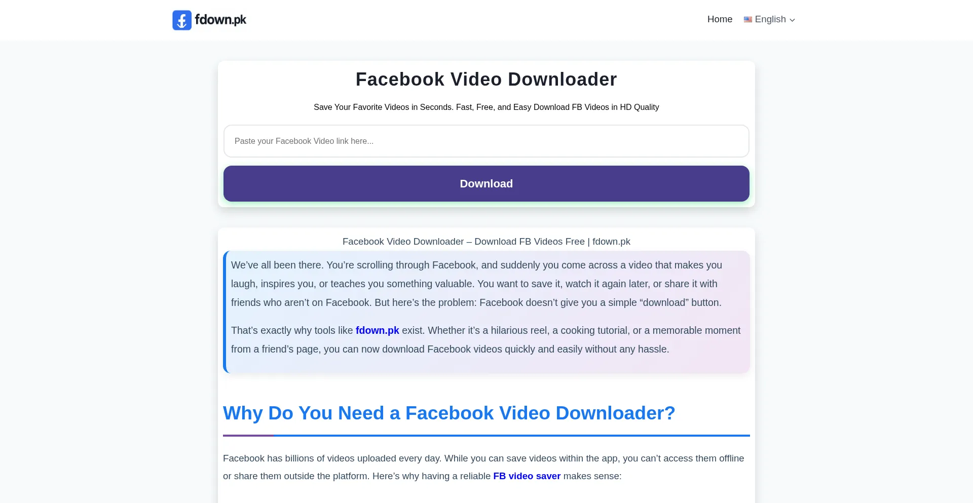 Download Facebook videos in HD quality with - Fast, free, and easy Facebook video downloader. Save FB videos, reels, and stories in MP4 format without any software.