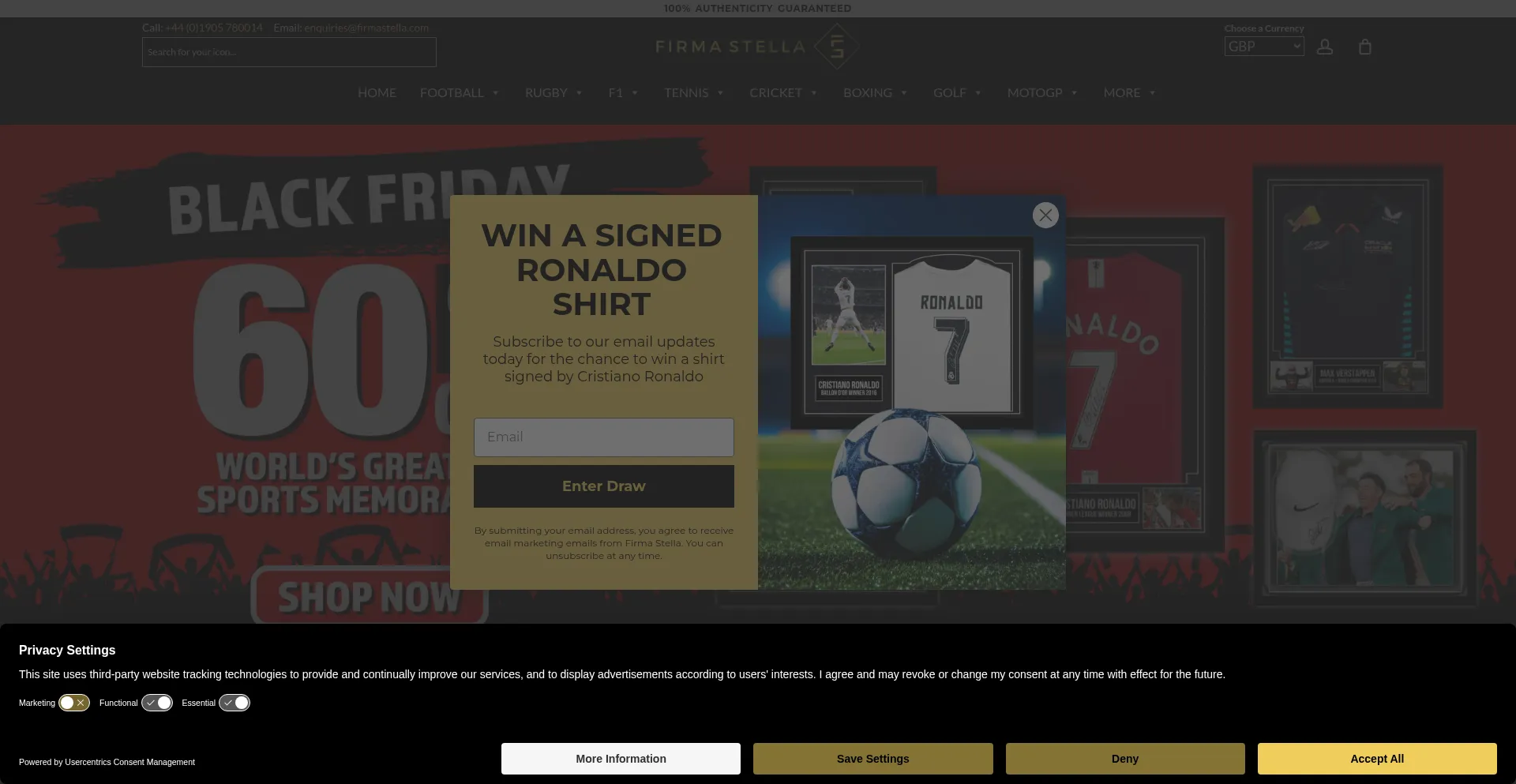 The World's No.1 Memorabilia Company, 100% Genuine - Football, Rugby, Cricket, F1, Tennis, Golf - COA - Quick UK & Fast Worldwide Shipping!