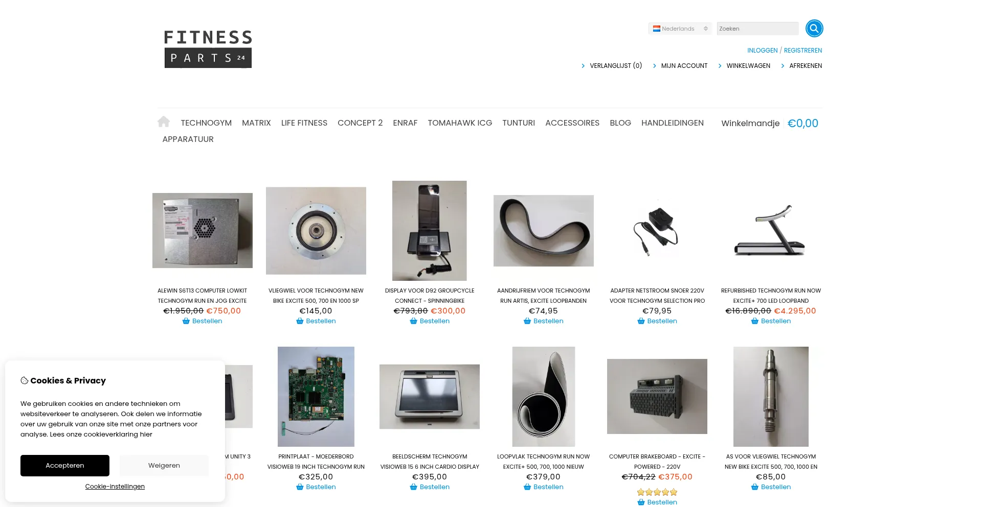 De webshop voor nieuwe, gebruikte en refurbished onderdelen en accessoires voor Fitness apparatuur zoals Technogym, Matrix, Lifefitness, Tomahawk ICG en Concept 2.