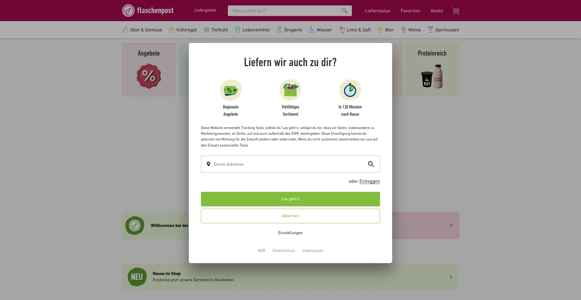 flaschenpost.de - Lebensmittel & Getränke in nur 120 Minuten