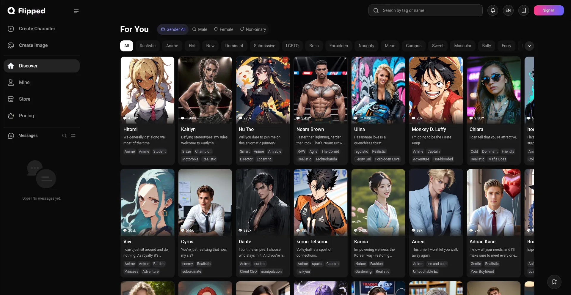 Join Flipped and chat with AI characters anytime! Build deep connections, enjoy lifelike conversations, and explore a world of intelligent AI companions - free!