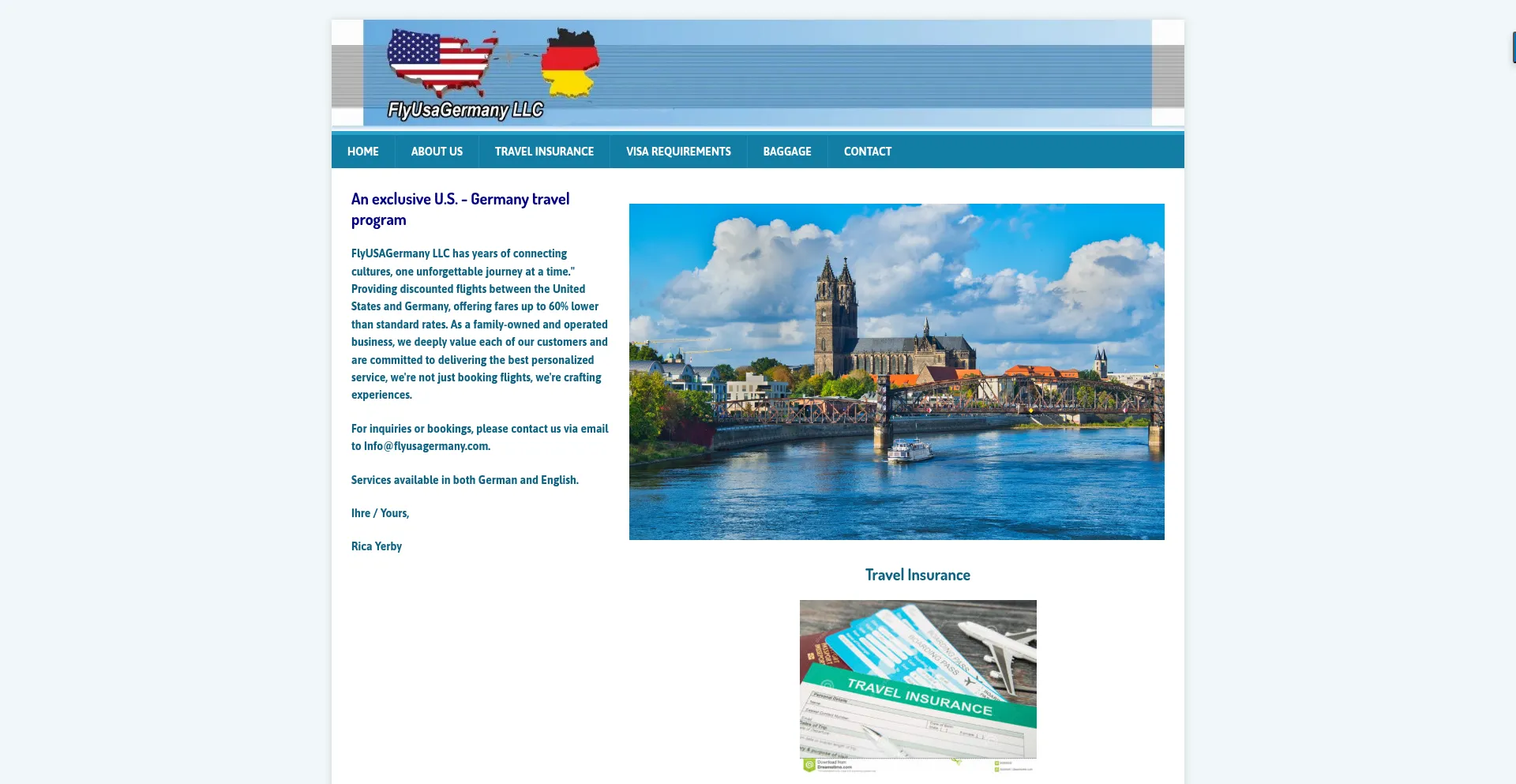 FlyUSAGermany LLC has years of connecting cultures, one unforgettable journey at a time." Providing discounted flights between the United States and Germany, offering fares up t...