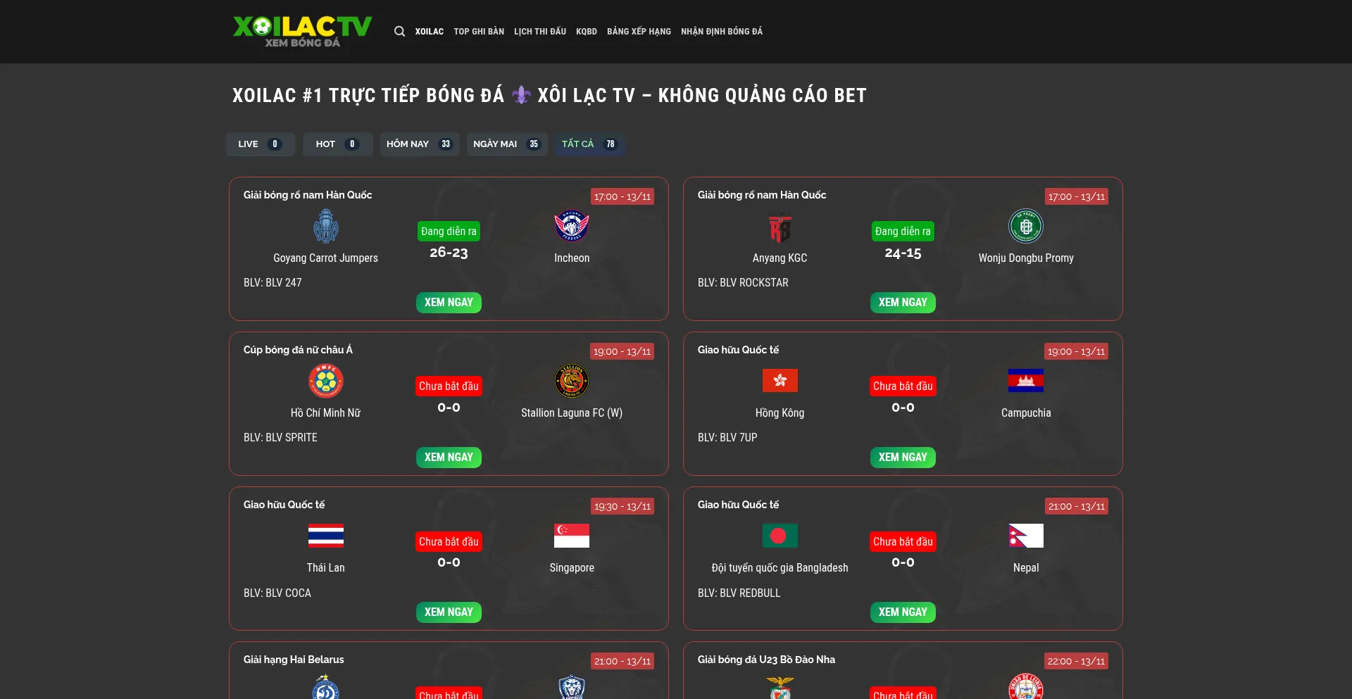 Xôi lạc tv xem bóng đá trực tiếp không quảng cáo nội dung cá cược 🎖️ Link truy cập xoilac tv chuẩn nhất - BLV Nhà Đài ✔️ Truc tiep bong da ...