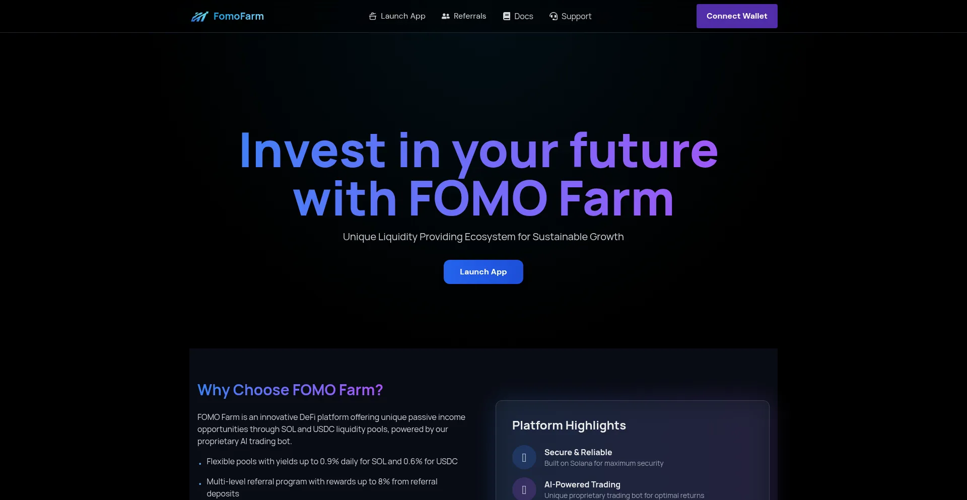 FomoFarm - Earn up to 0.9% yield daily from staked SOL or USDC