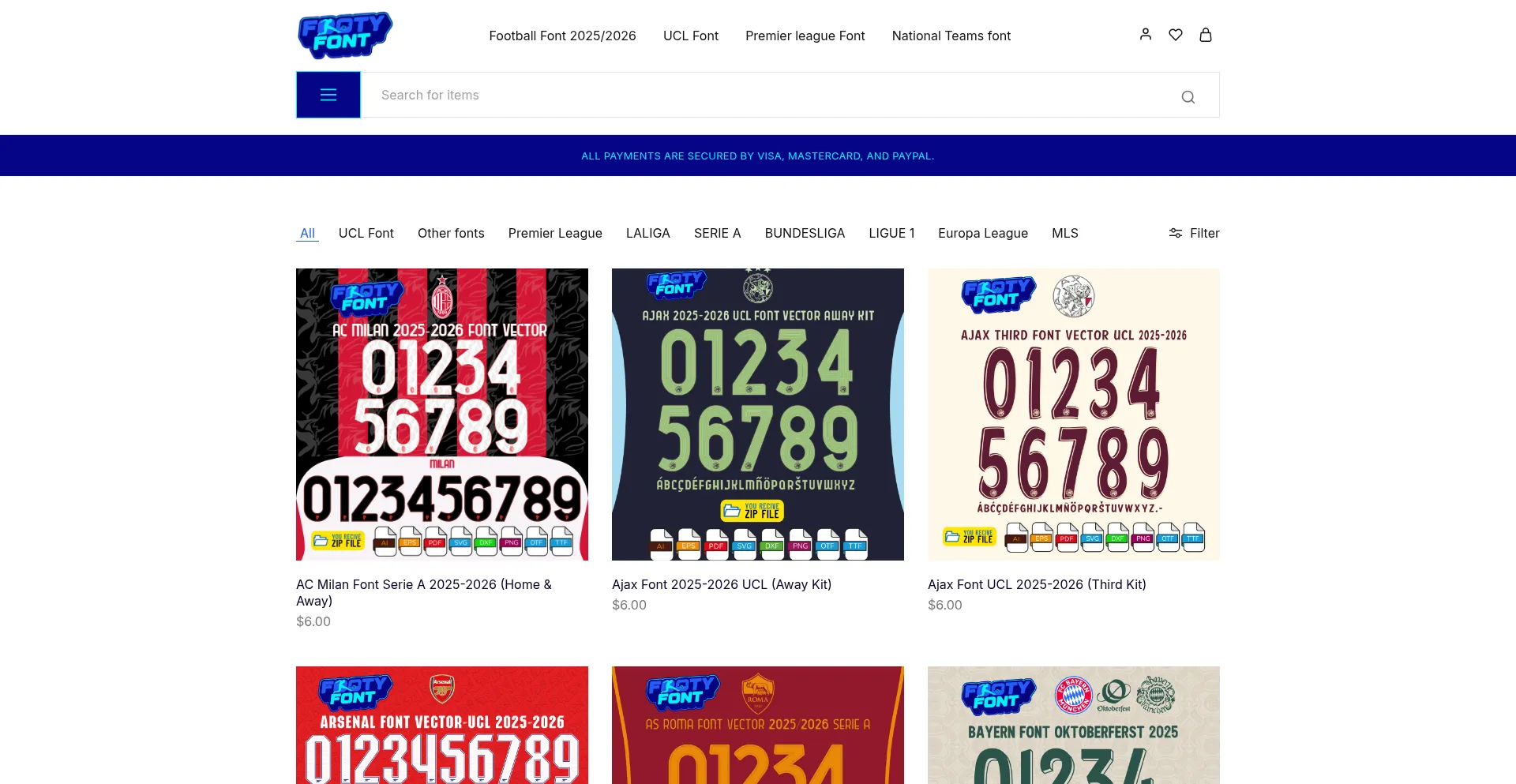 Download Premium Football Fonts 2025-2026 kits All Clubs (Laliga, Serie A, UCL, premier league) . Get Font (OTF, TTF) and Vector Files Numbers. Shop now!