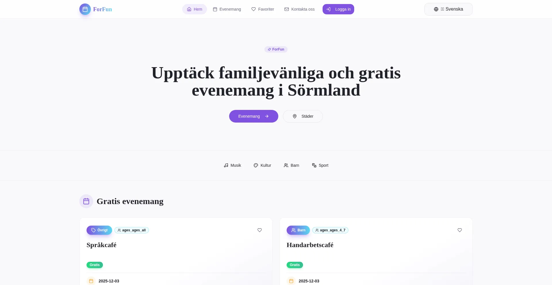 ForFun - Upptäck lokala evenemang i Sörmland